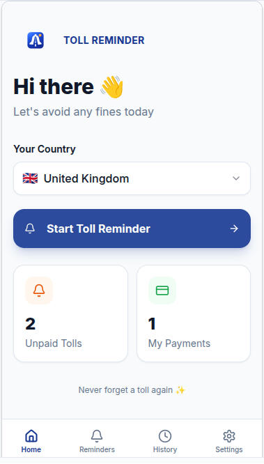 Don't let a small toll fee turn into a big fine! Get Toll Reminder today and save yourself from being one of the millions of drivers who forget to pay tolls every year!